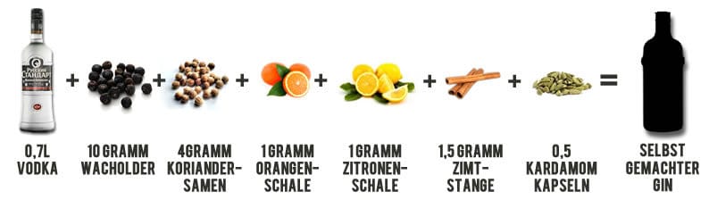 Das Rezept oben ist die perfekte Basis für ein Ausgangsrezept, das typische Ginaromen mitbringt. Einige Gewürze passen besonders gut in diese Mischung. Zum Beispiel könnte man aus einem der folgenden, zusätzlichen Gewürze auswählen: